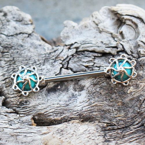 316L Surgical Steel Turquoise Stone Carousel Nipple Bar by Fashion Hut Jewelry