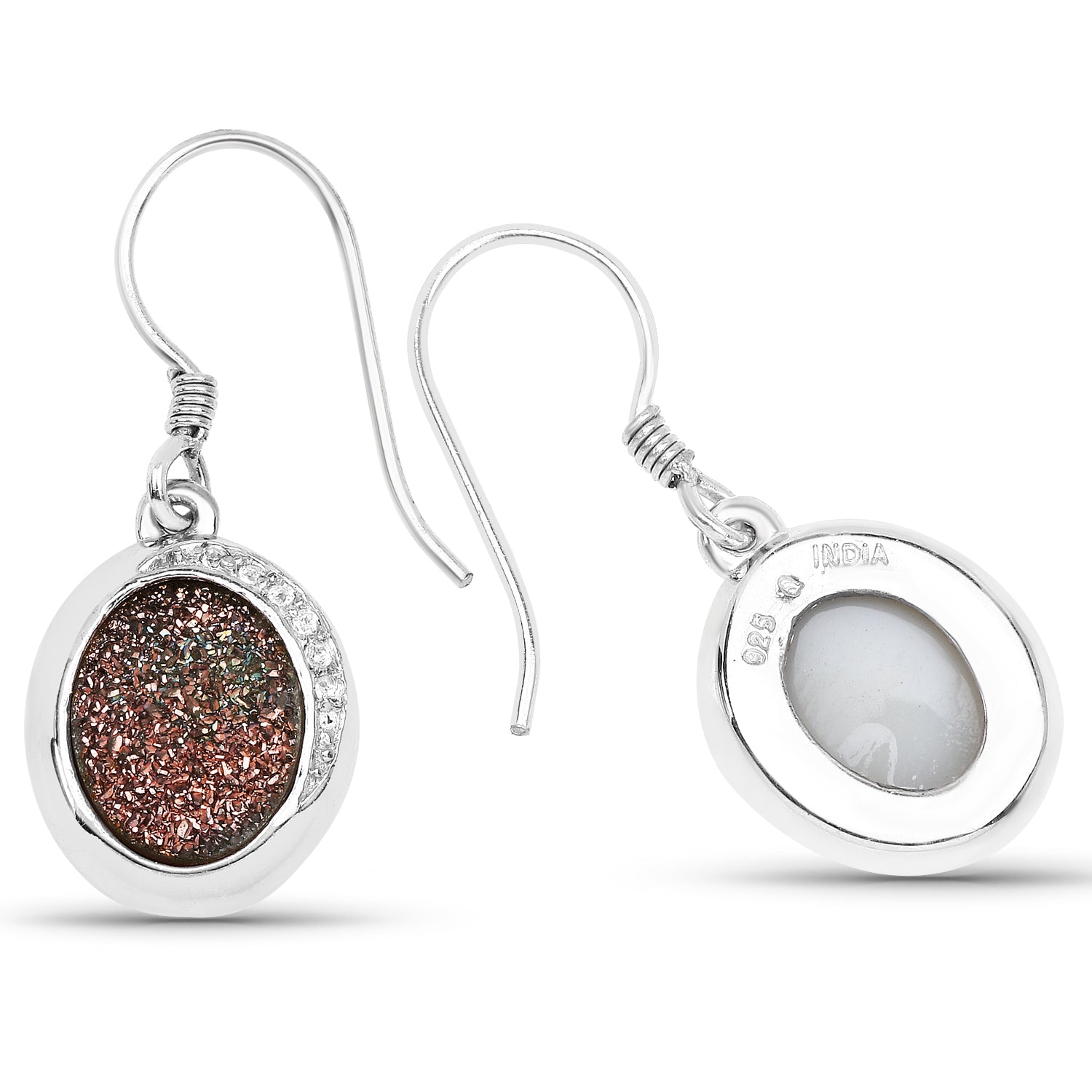 4.72 Carat Genuine Copper Bloom Drusy and White Topaz .925 Sterling Silver Earrings Quartz Drusy:Oval/10x8mm 2/4.62 ct.w + Topaz White:Round/1.10mm 8/0.06 ct.w + Topaz White:Round/1.20mm 4/0.04 ct.w