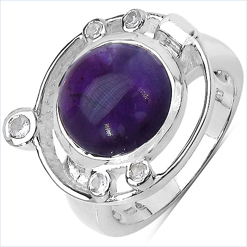 5.20 Carat Genuine Amethyst & White Topaz .925 Sterling Silver Ring