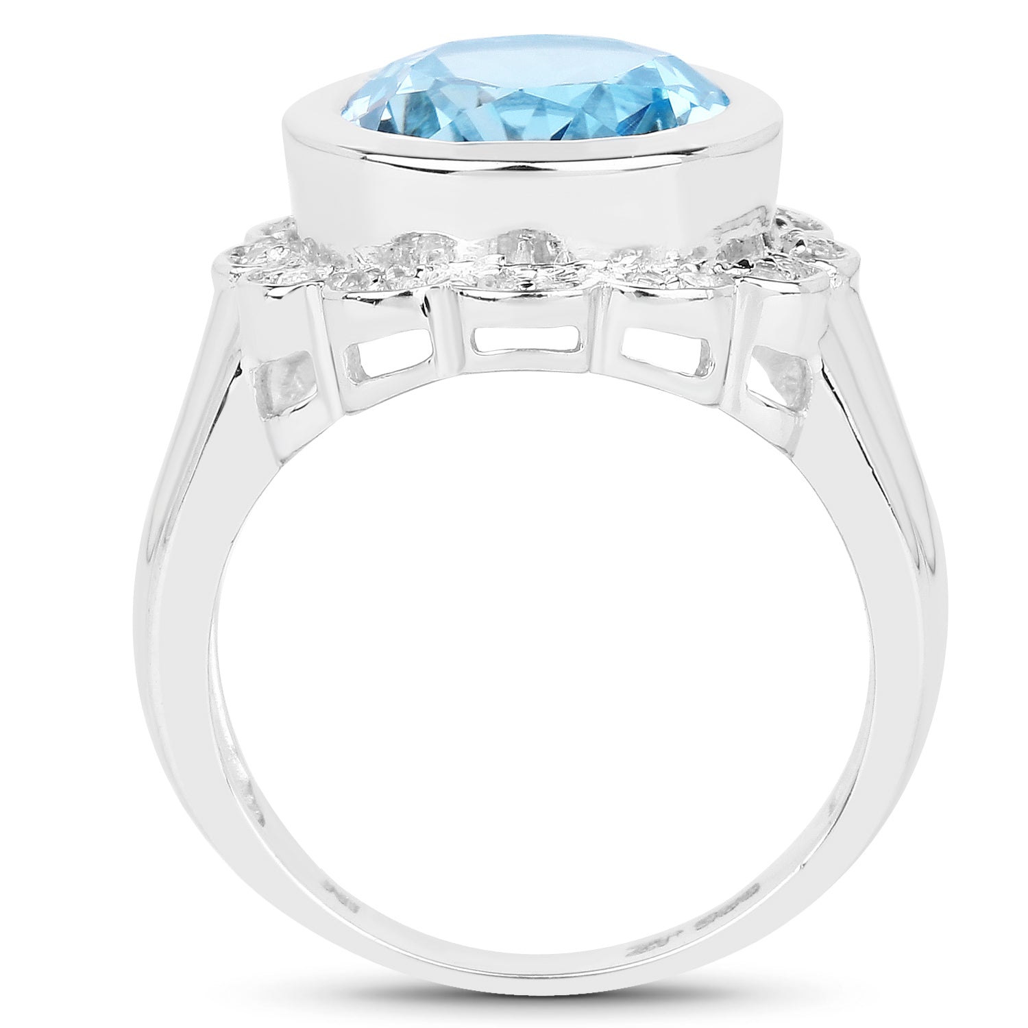 5.39 Carat Genuine Blue Topaz and White Topaz .925 Sterling Silver Ring