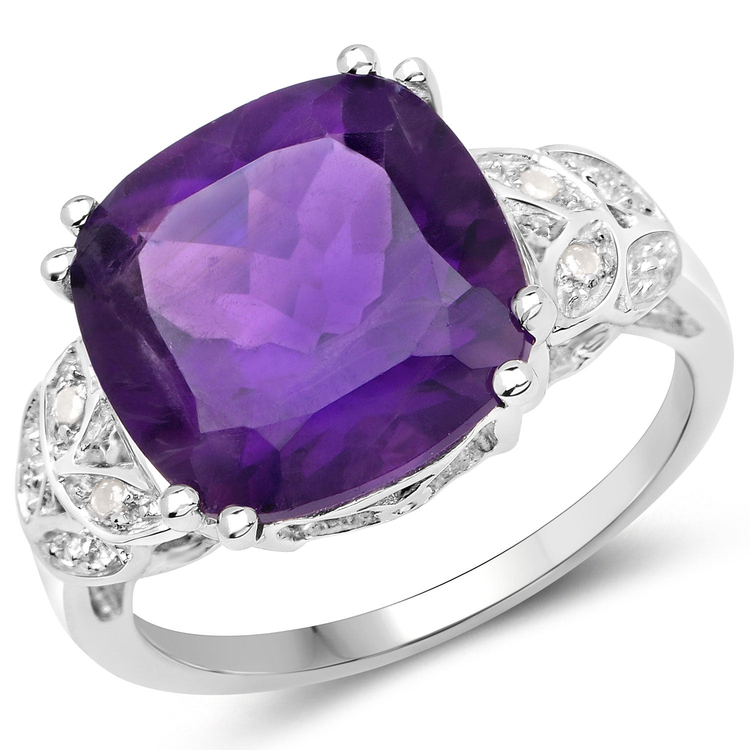 5.87 Carat Genuine Amethyst and White Diamond .925 Sterling Silver Ring Amethyst:Cushion/12.00mm 1/5.85 ct.w + Diamond White:Round/1.00mm 4/0.02 ct.w