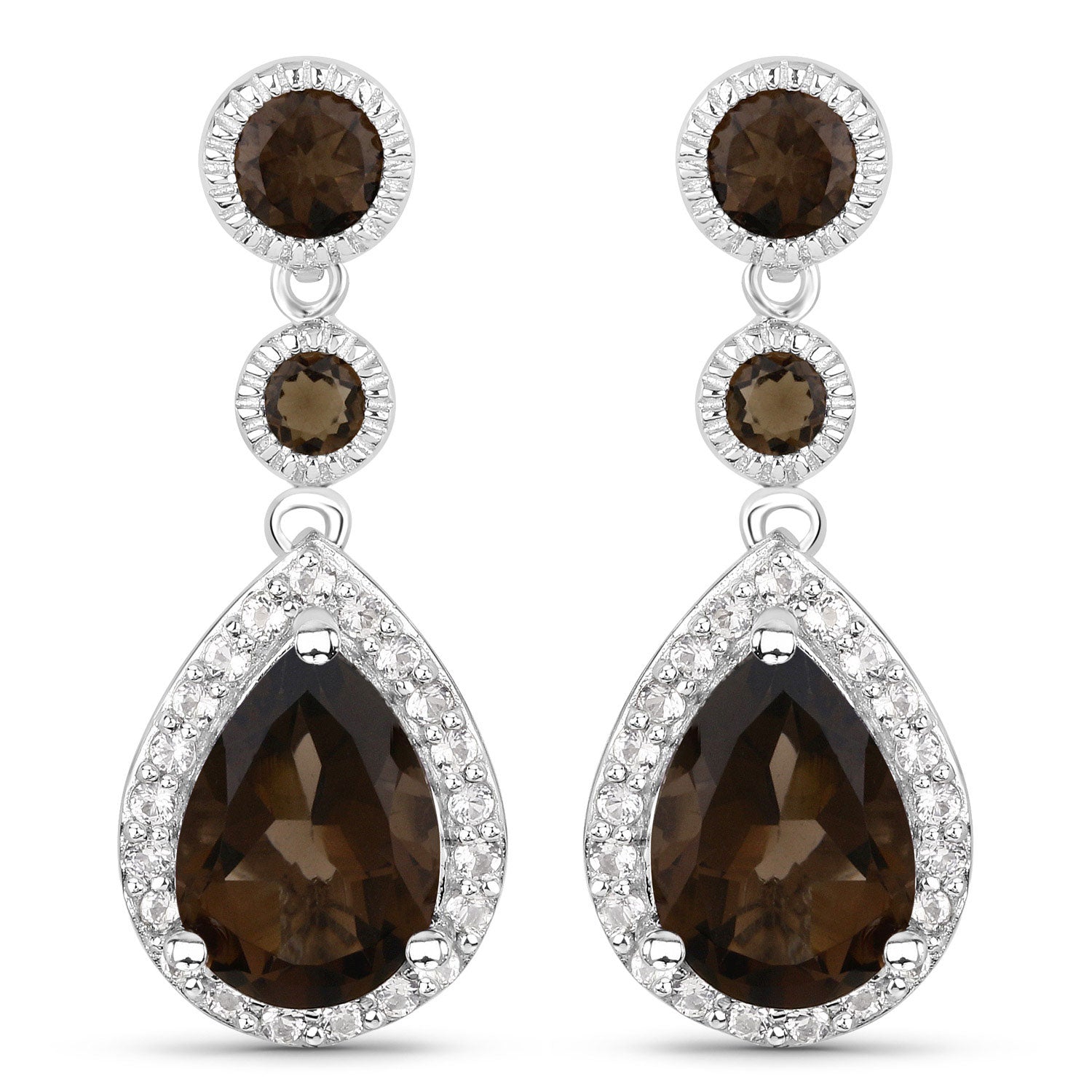 7.34 Carat Genuine Smoky Quartz and White Topaz .925 Sterling Silver Earrings