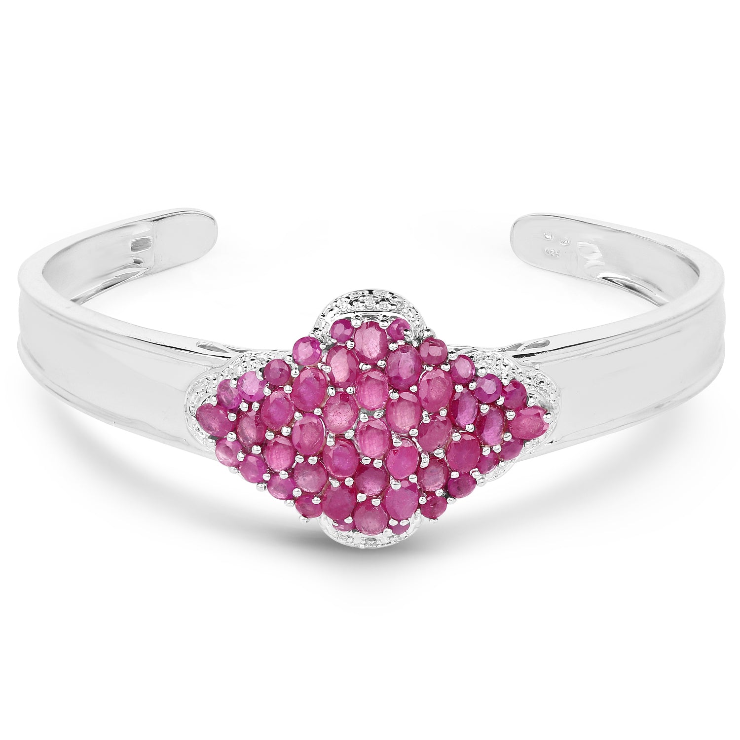 7.38 Carat Glass Filled Ruby, Ruby and White Topaz .925 Sterling Silver Bangle