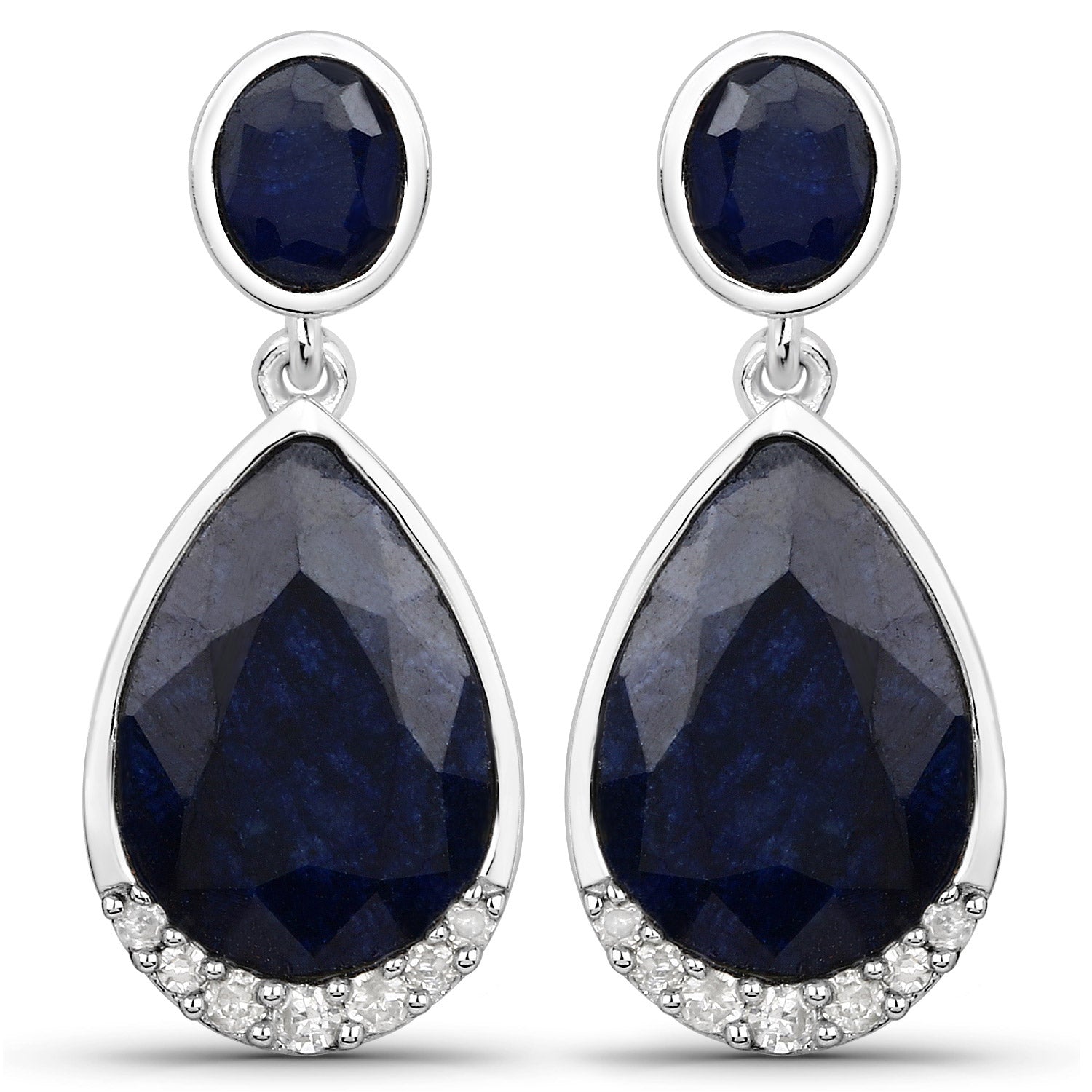 7.90 Carat Dyed Sapphire and White Diamond .925 Sterling Silver Earrings Sapphire Dyed:Pears/12x8mm 2/7.00 ct.w + Sapphire Dyed:Oval/5x4mm 2/0.76 ct.w + Diamond White:Round/1.50mm 2/0.03 ct.w + Diamond White:Round/1.30mm 4/0.05 ct.w + Diamond White:Round/1.20mm 4/0.03 ct.w + Diamond White:Round/1.10mm 4/0.03 ct.w
