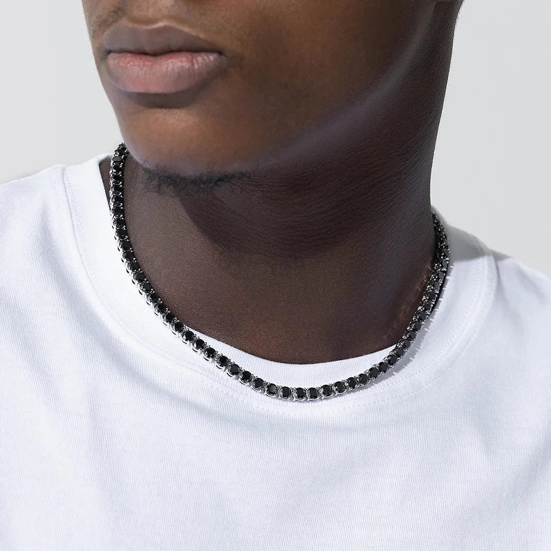 Fulfilled by our friends at Bling Proud | Urban Jewelry Online StoreThis stunning Black Moissanite Diamond 925 Sterling Silver Tennis Chain will add just the right amount of sparkle to your everyday look. Its unique design and dazzling shine will make you stand out and catch everyone's attention. With the...
