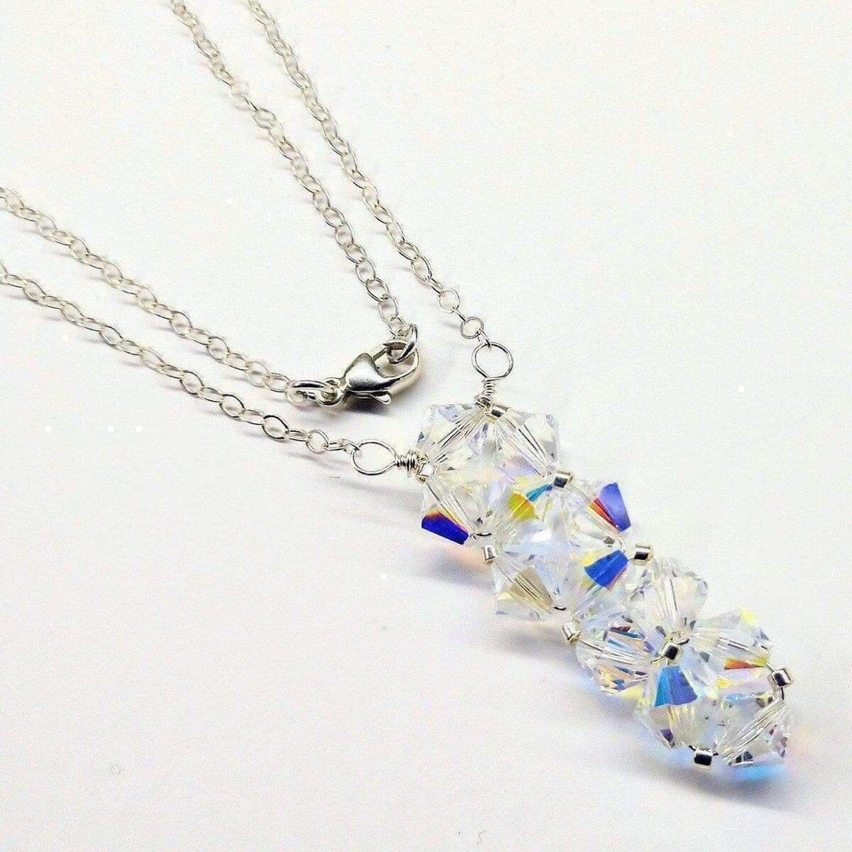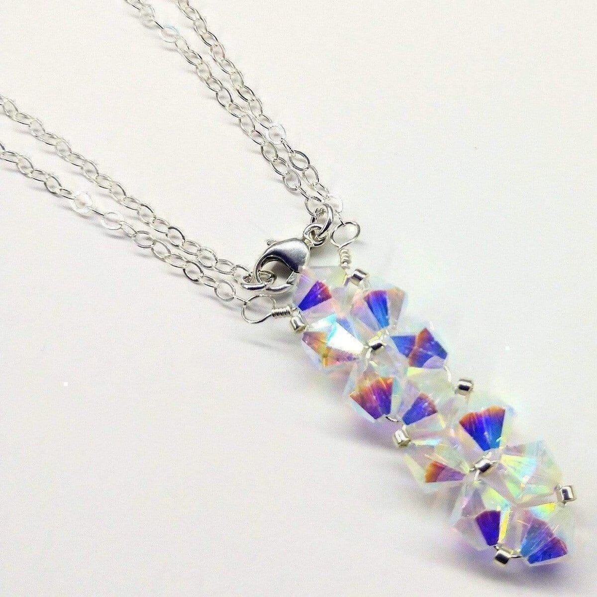 Add a touch of elegance to your look with our Handmade Wire Woven Crystal Rock Candy Necklace available in many fun colors. This  crystal bar pendant, features 11 sparkling Swarovski crystals and silver beads. Handcrafted and finished with a sterling silver cable chain, this necklace is perfect for any occasion.