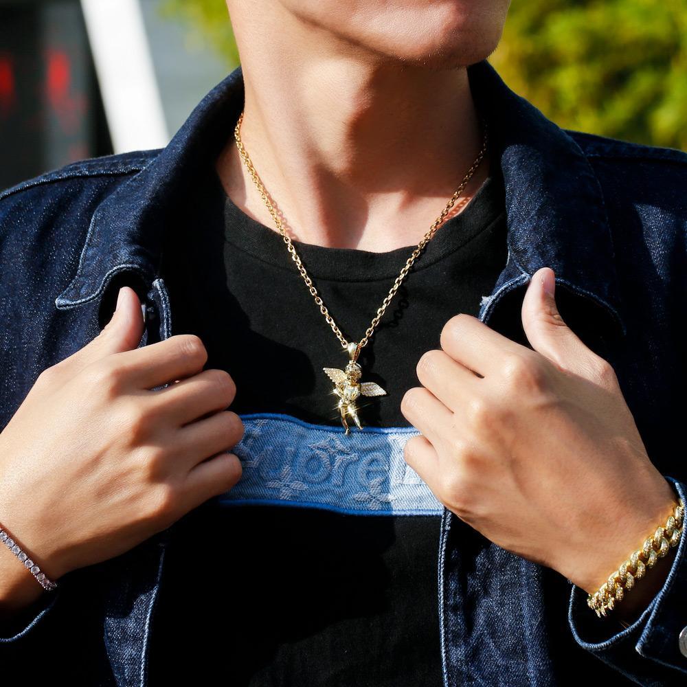 Iced Cupid Angel Pendant 14K Gold Plated by Bling Proud