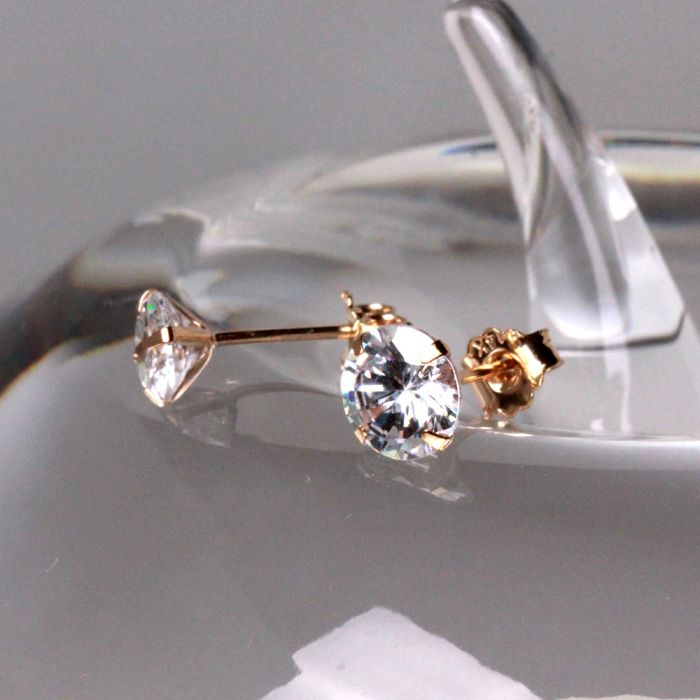 Fulfilled by our friends at Fashion Hut JewelryPair of 14Kt Yellow Gold Clear Round CZ Stud Earrings.A pair of 14Kt. Yellow Gold Earring with prong set Clear Round CZ.Finest Cubic Zirconia on luxurious 14Kt. Gold.Available in 5 sizes.
