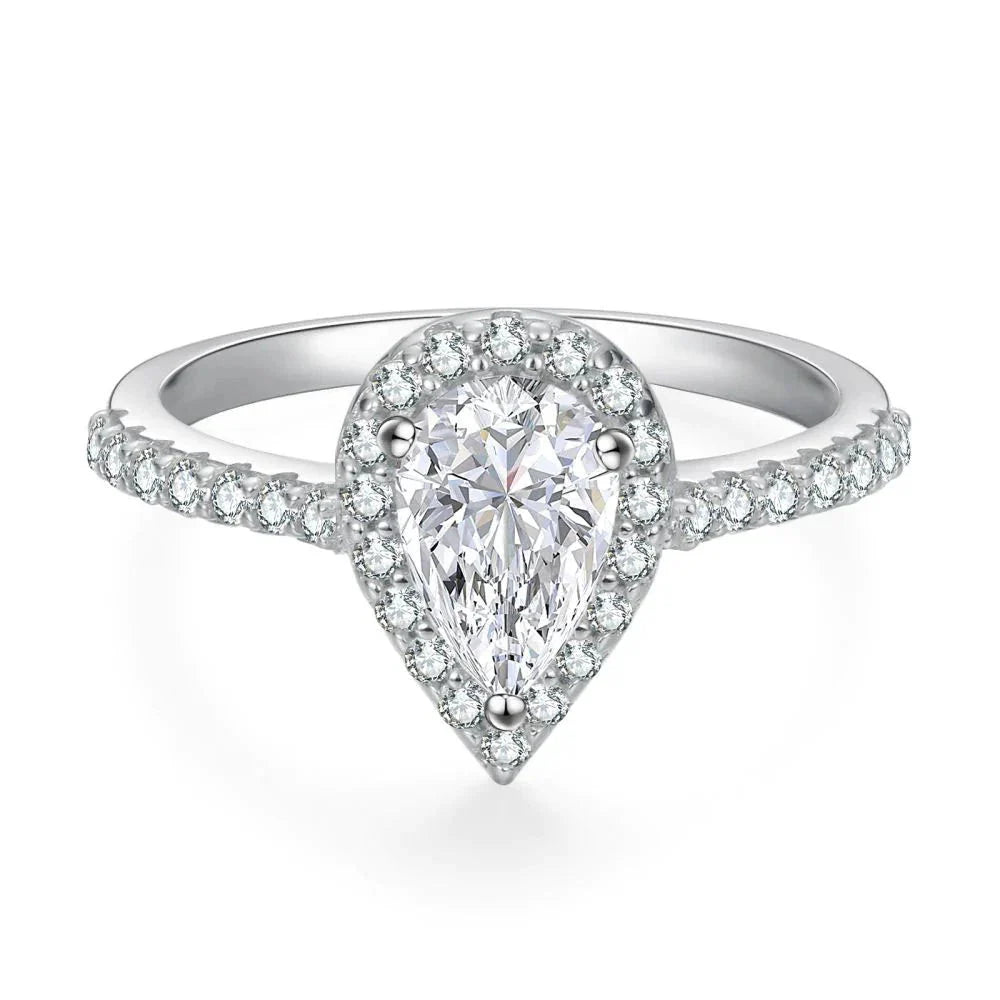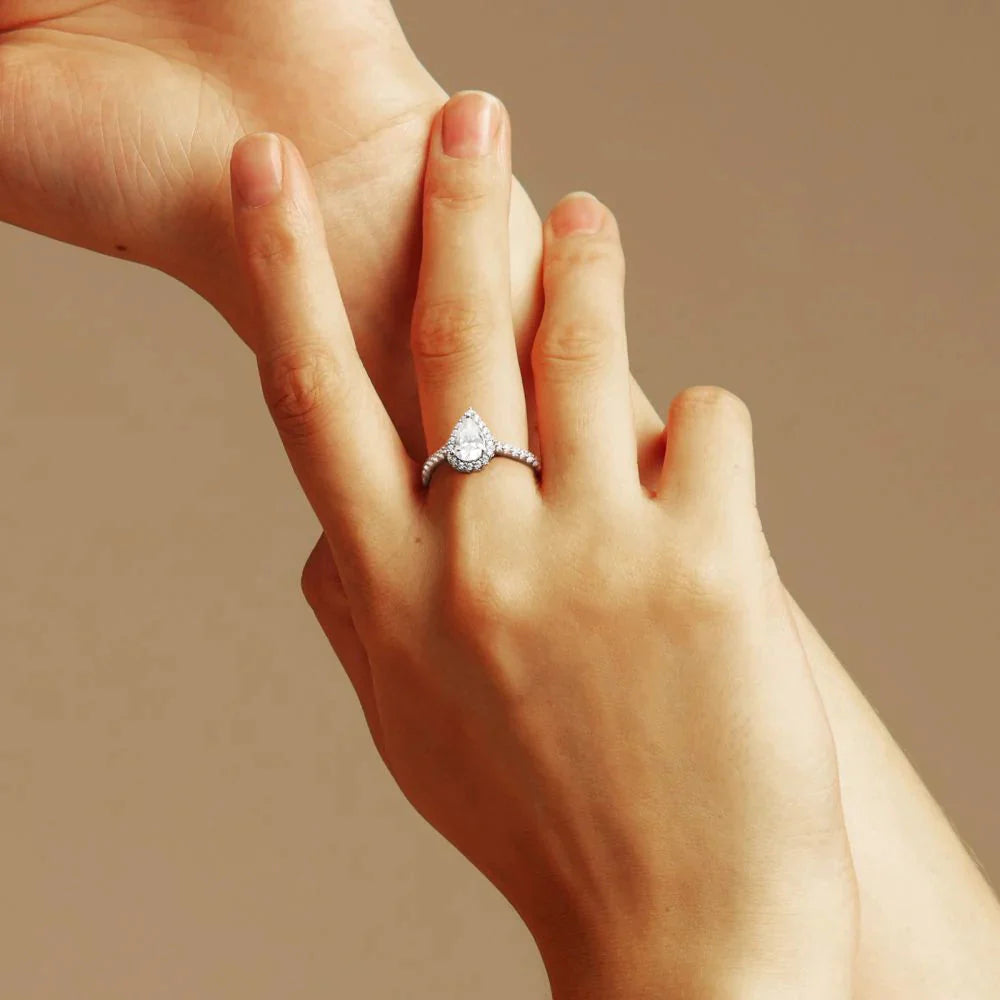 Pear Cut Moissanite Diamond Paved Halo Ring for Women by Bling Proud
