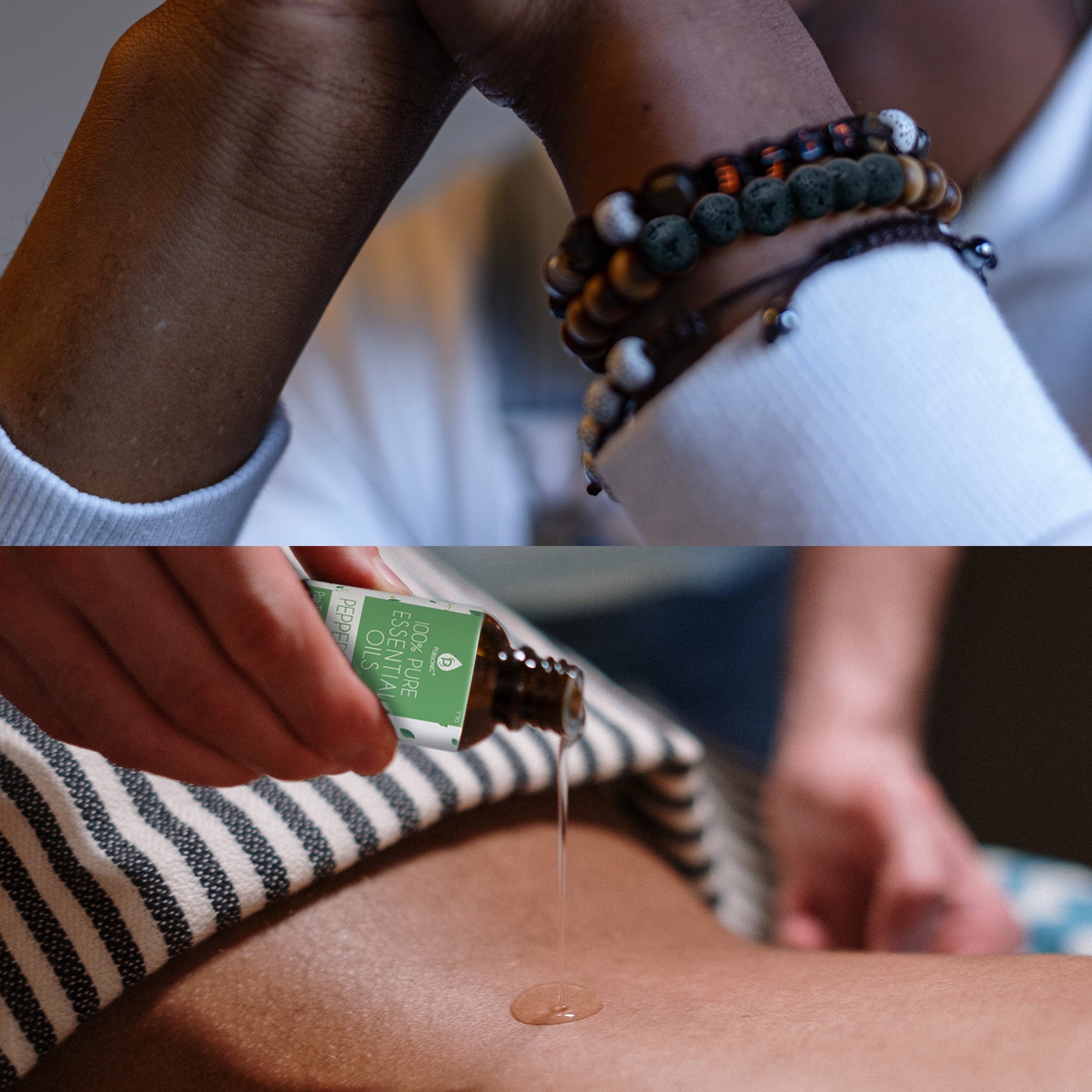 Get ready, you are about to be more enlightened than ever. Enhance and lighten your emotional state with the power of essential oils, thoughtfully paired with our Natural Lava Stone Aromatherapy Bracelet. This duo combines the mindful craftsmanship of the bracelet with the unique benefits of Eucalyptus, Lavender, and Tea Tree essential oils, offering a holistic and uplifting experience for your well-being.