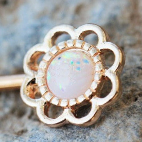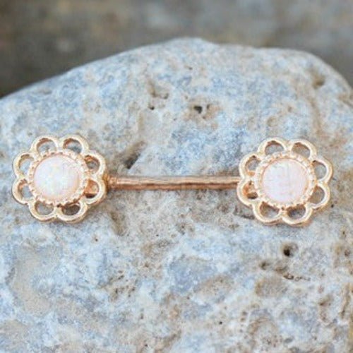 Rose Gold Synthetic Opal Flower Nipple Bar by Fashion Hut Jewelry