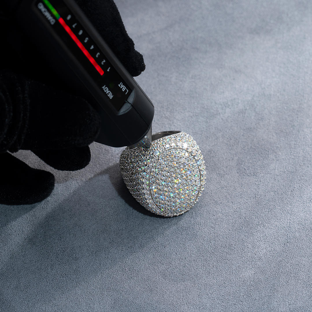 S925 Moissanite Diamond Fully Iced Lagre Oval Ring - VVS1 Be sure to stand out with the luxurious shine of this timeless piece.