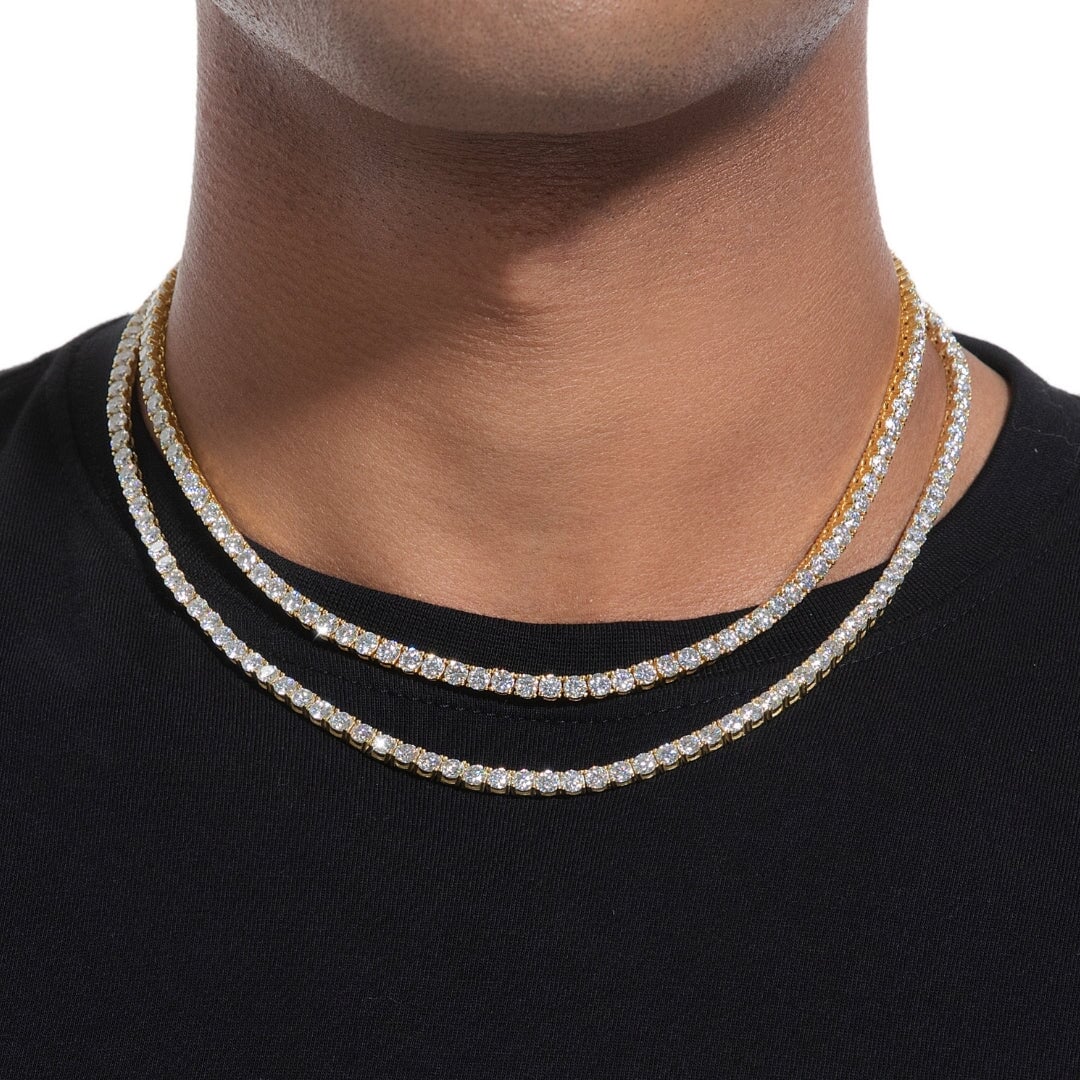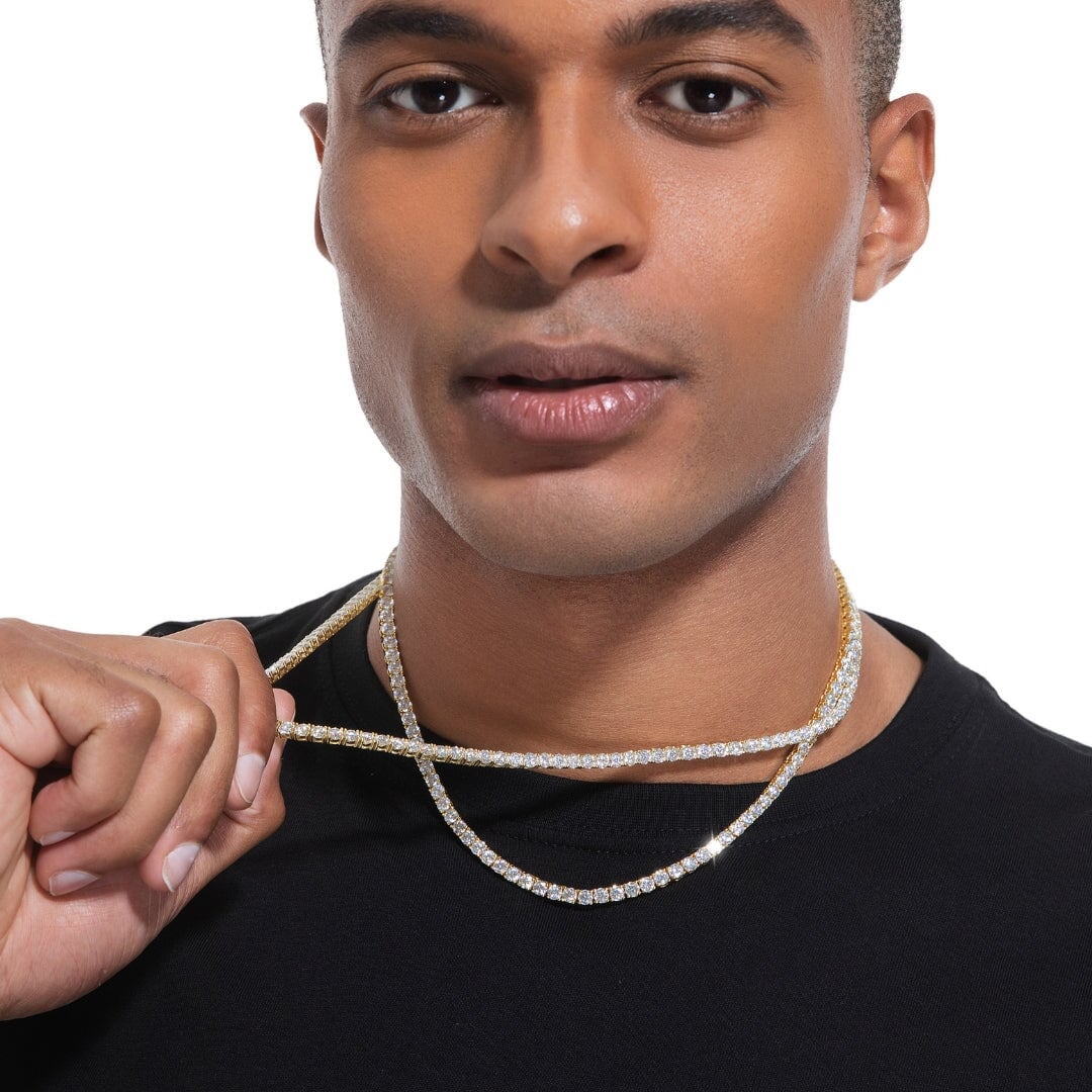 Fulfilled by our friends at Bling Proud | Urban Jewelry Online StoreThis 4mm 14k gold S925 moissanite tennis chain features brilliant, colorless (D-Color), VVS1 moissanite diamonds held in a secure prong setting. Each moissanite stone is carefully tested and guaranteed to be genuine. The durable lobster clasp ensures this chain...
