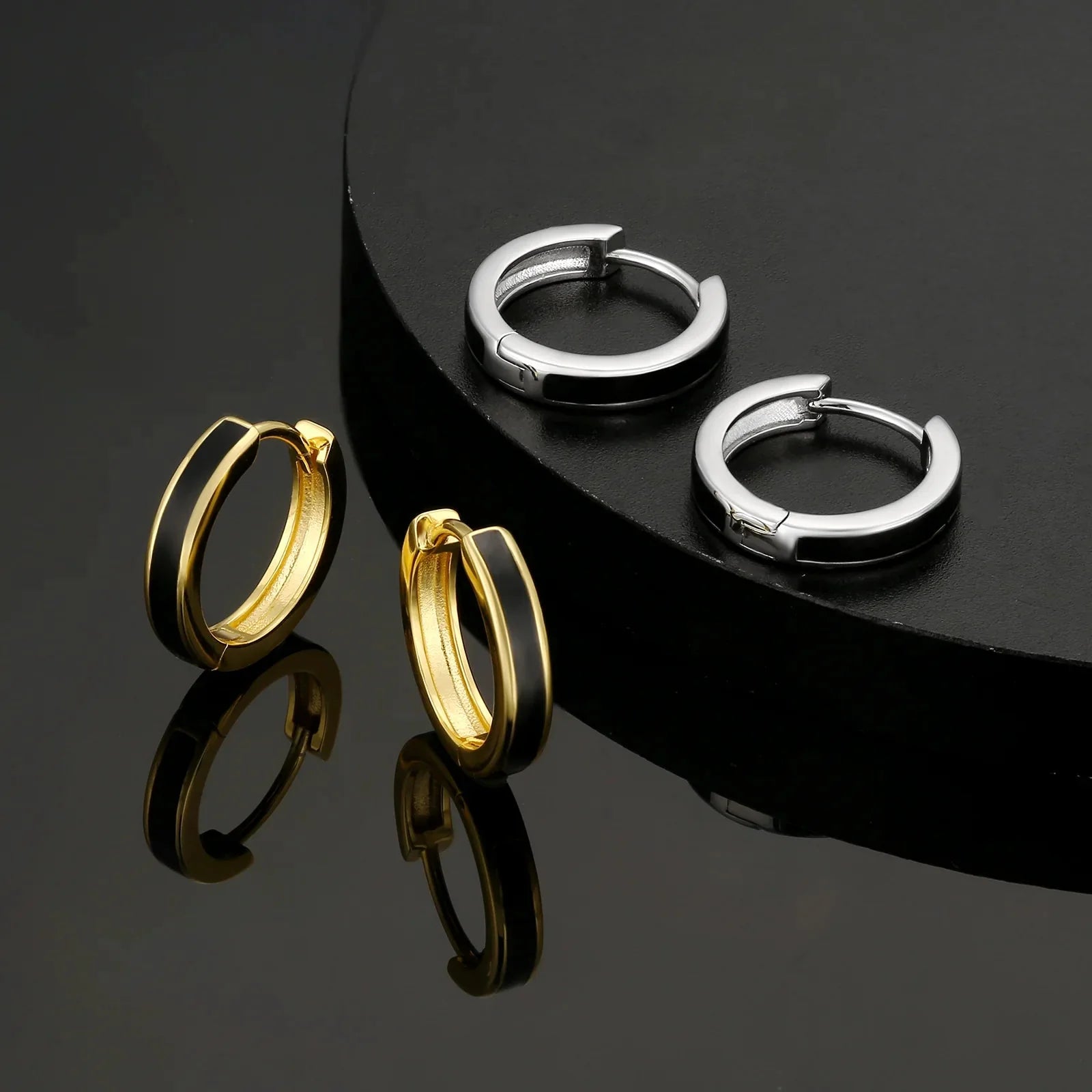 S925 Silver Sleek Black Hoop Earrings in 14K Gold - 15mm by Bling Proud